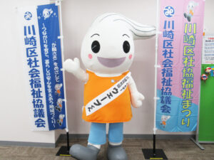 平成3年の「福祉パルかわさき」開設に伴い、誕生した川崎区社会福祉協議会のキャラクター「ウェーブくん」。