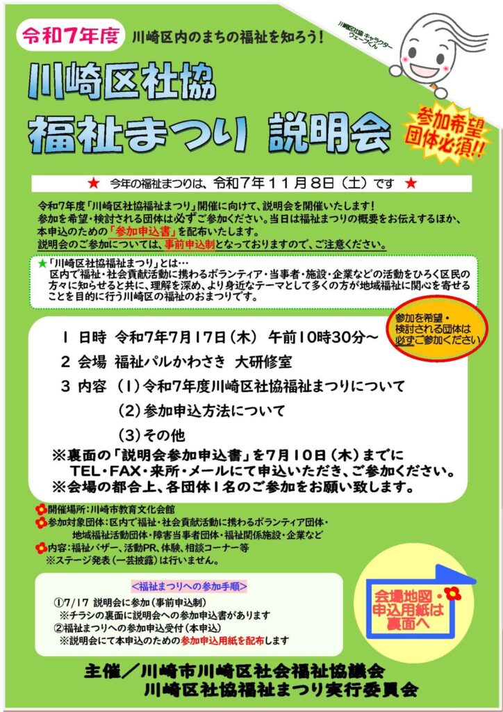 川崎区社協福祉まつり 説明会を開催します!